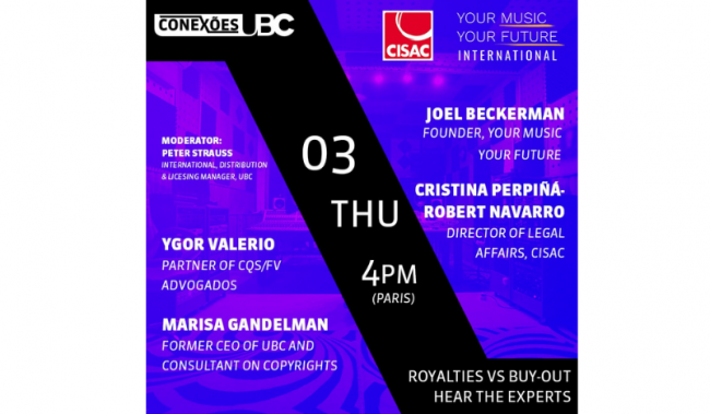 This was the question at the heart of a discussion panel “Royalties vs Buyouts”, bringing together the global education campaign Your Music Your Future, Brazil’s music society UBC and CISAC, the global confederation of authors societies.